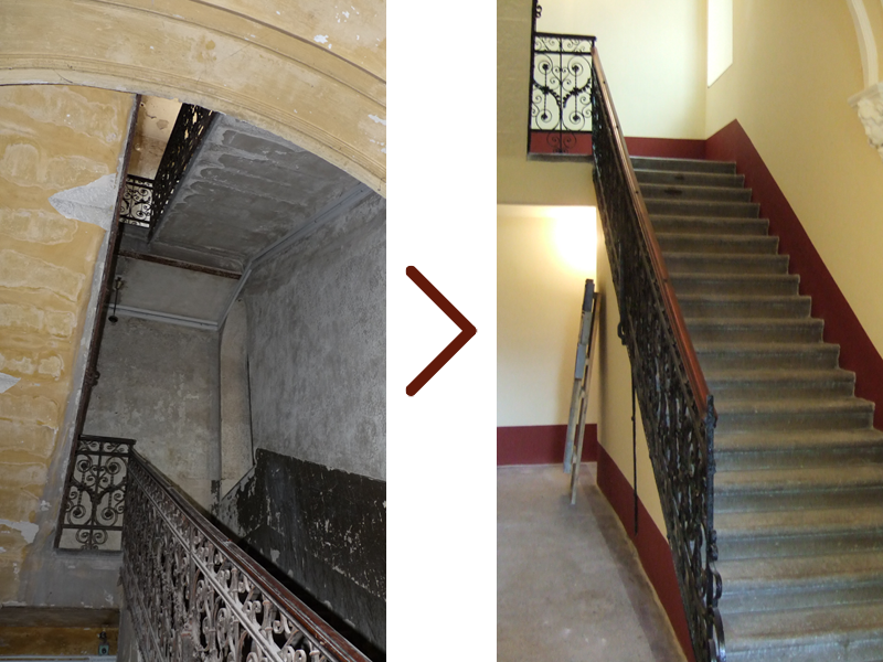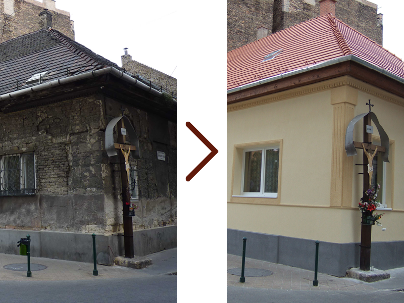 - Budapest, V. ker., Stollár Béla u. – bérház kémény és tetőszerkezet felújítása, bejárati ajtó restaurálása